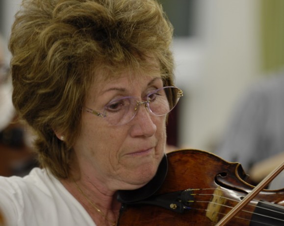 Susanne Stempinski gehörte dem Augsburger Ärzteorchester über 20 Jahre lang an und war in dieser Zeit fast bei jedem Konzert dabei. Sie war eine hervorragende Geigerin mit viel Orchestererfahrung, auf die man sich in den Ersten Violinen immer verlassen konnte. Das Bild zeigt sie mit einem unbeschwerten Lächeln, so wie wir sie immer erlebt haben, immer fröhlich, immer „gut drauf“.